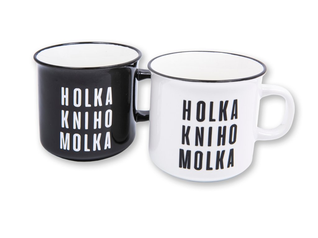 Stylový knihomolský hrnek o objemu 300 ml v bílé nebo černé variantě. Retro vzhled plecháčku, ale v keramickém provedení. Nápis „Holka knihomolka“ – ideální společník pro vaše čtenářské chvilky.