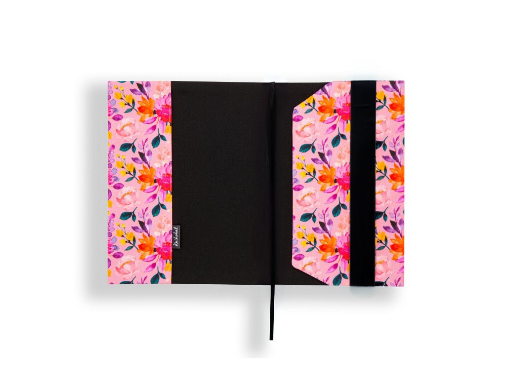 Knihobal má v levé části pevnou širokou kapsu, do které se zasune přední obálka vaší knihy. Vpravo se obal přehne kolem zadní obálky knihy a zafixuje se pomocí gumy tak, aby držela na místě, to znamená, že můžete změnit délku obalu v závislosti na tloušťce vaší knihy.