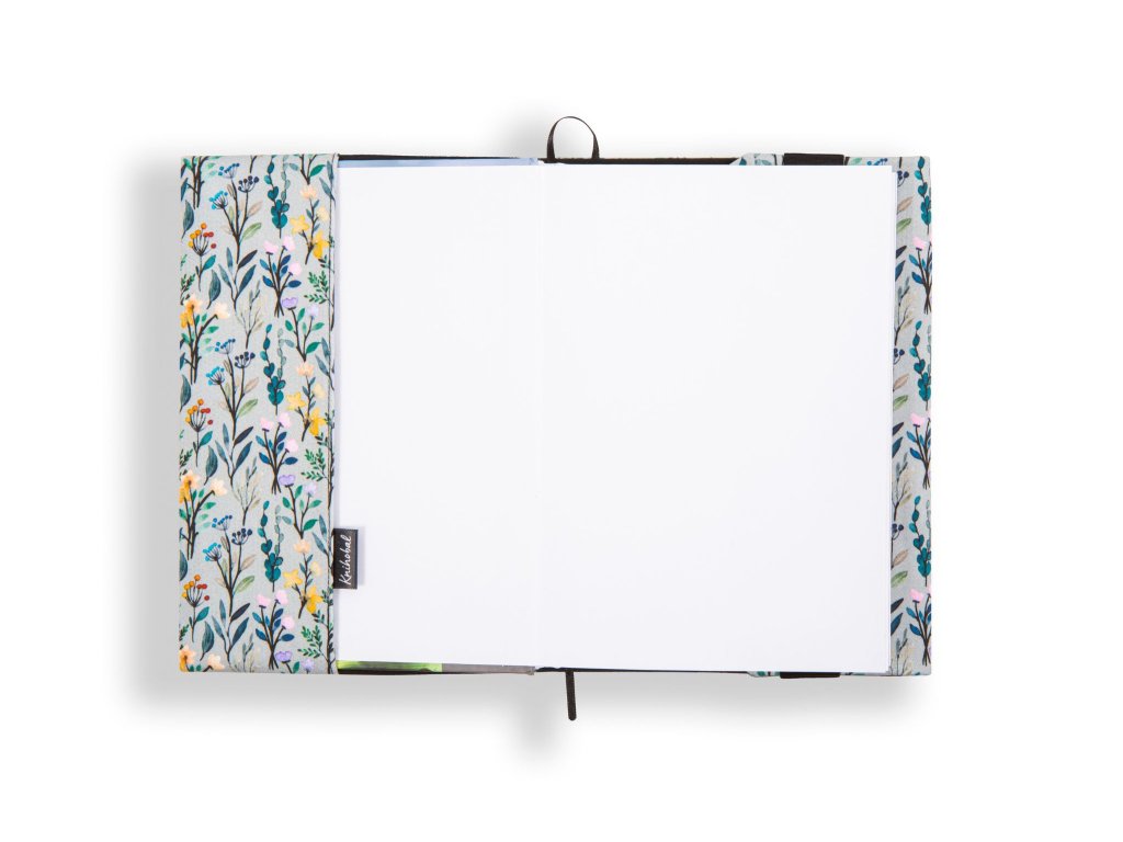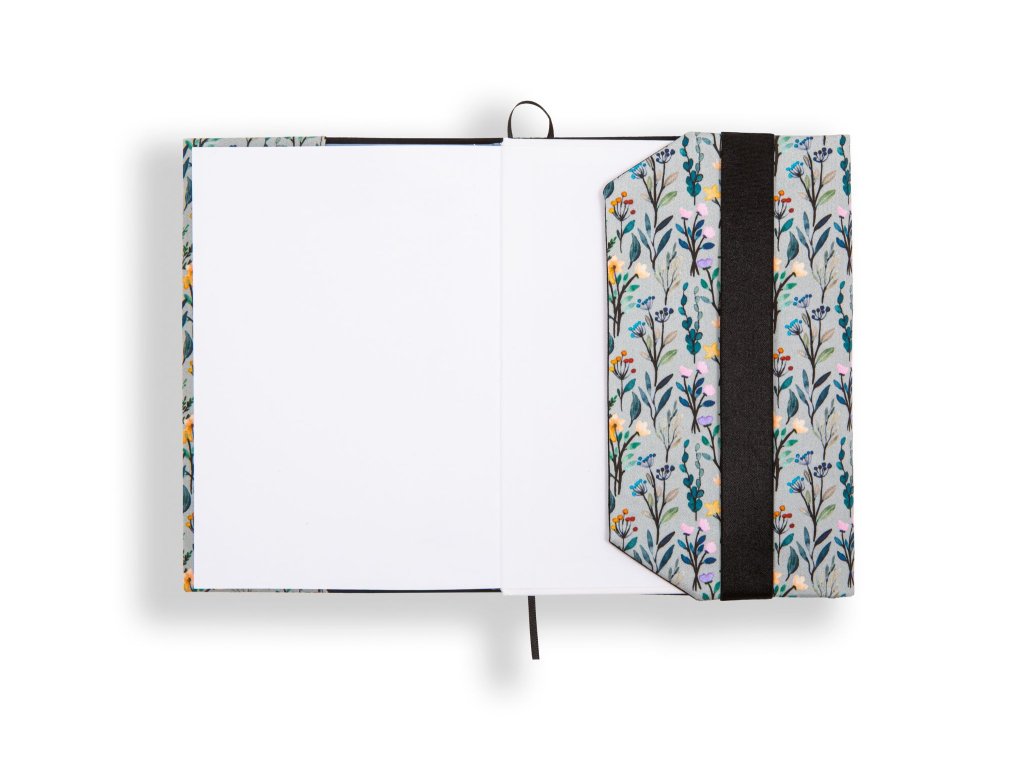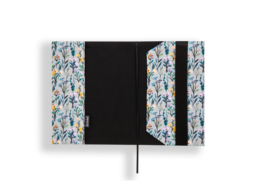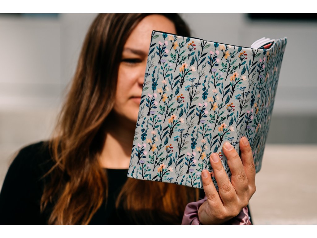 Knihobal má v levé části pevnou širokou kapsu, do které se zasune přední obálka vaší knihy. Vpravo se obal přehne kolem zadní obálky knihy a zafixuje se pomocí gumy tak, aby držela na místě, to znamená, že můžete změnit délku obalu v závislosti na tloušťce vaší knihy.